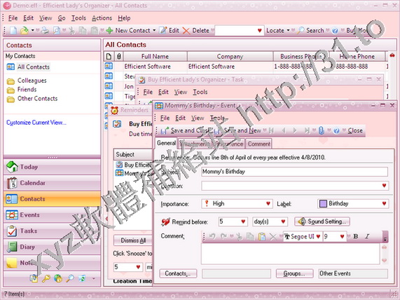 • Efficient Software Efficient Ladys Organizer Pro v1.05 Build.16 英文正式版(個人資訊管理系統軟體)