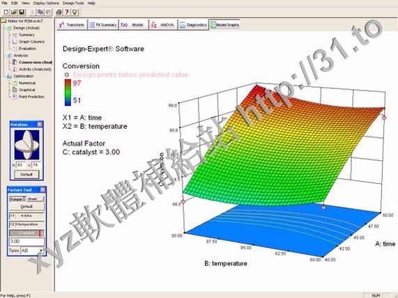 到理想的最佳性能和發現過程設置最佳產品配方。輕鬆地從各個角度視圖響應表面與可旋