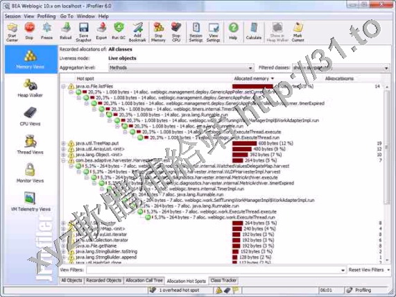 它把對CPU、執行線程和記憶體的剖析組合在一個強大的應用中。JProfiler的GUI可以讓你